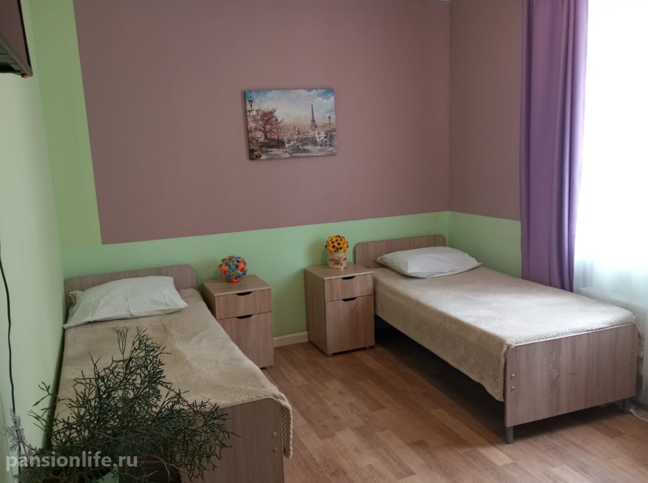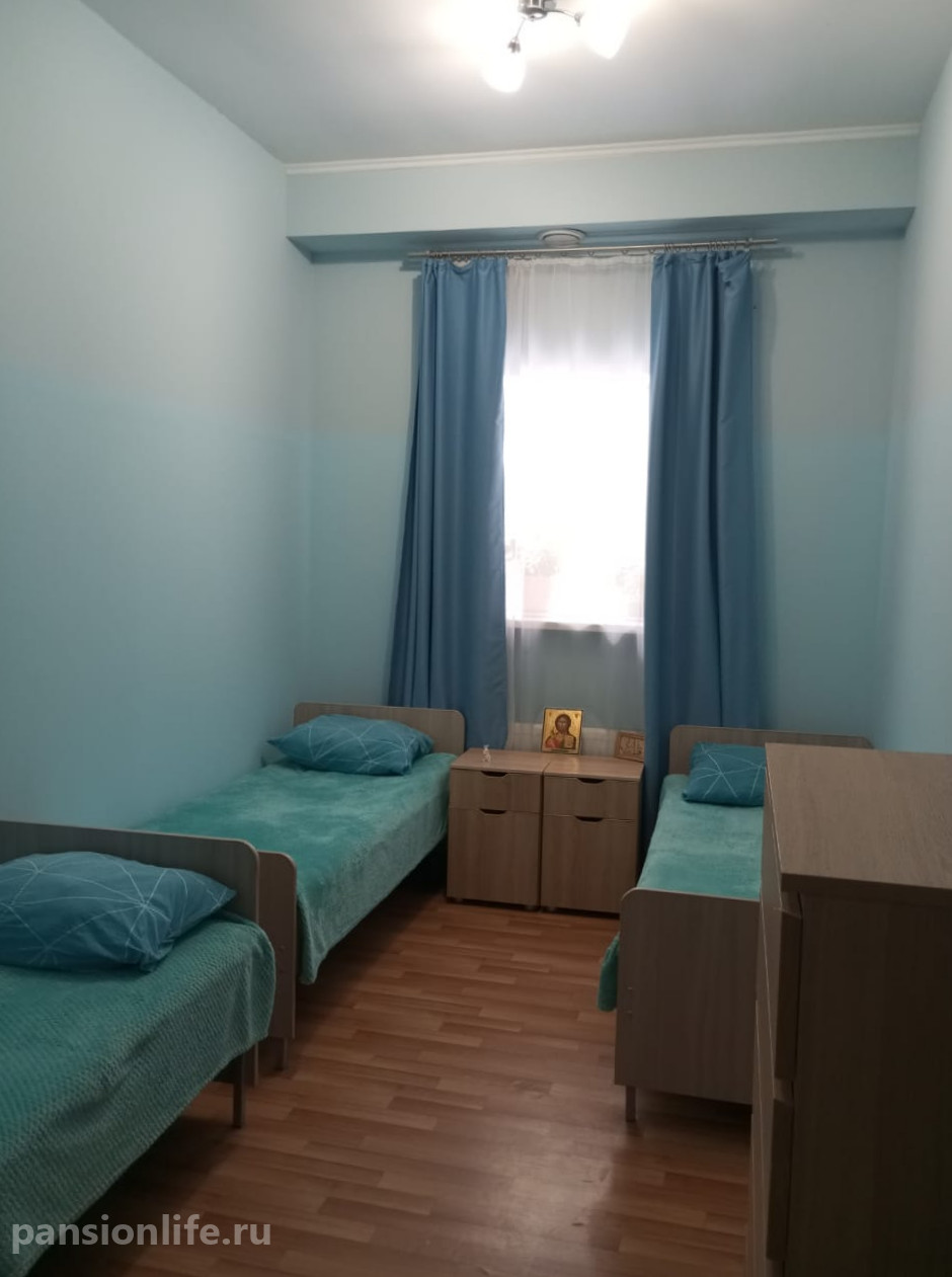 Для размещения предлагаются светлые номера, рассчитанные на 3-5 человек, с ежедневной уборкой. Проживающим обеспечивается сбалансированное пятиразовое питание из свежих продуктов (овощи, фрукты, мясо, молочные продукты) с еженедельным обновлением меню. Организован досуг, проводятся творческие мероприятия и когнитивные тренинги.